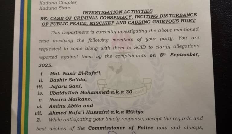 A police letter dated September 4, 2025, and signed by the Deputy Commissioner of Police in charge of the Criminal Investigation Department (CID), Uzainu Abdullahi, directed the ADC Kaduna State Chairman to produce El-Rufai and six other party members at the State Criminal Investigation Department (SCID) on September 8, 2025.