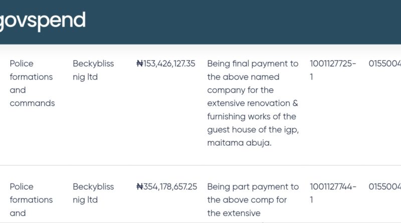 According to the payment details, on December 7, 2023, a sum of N153.4 million was paid to Beckybliss Nigeria Limited. The payment description read: “Being final payment to above named company for the extensive renovation and furnishing works of the guest house of the Inspector General of Police, Maitama.”