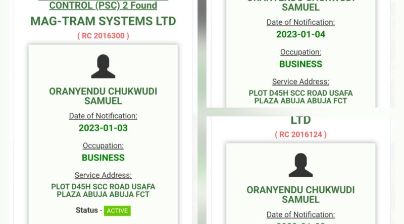According to the investigation, five companies — Akulight Technologies Limited, Mag-Tram Systems Limited, Drip-CHS Tech Nigeria Limited, Elapsotic Ventures Limited, and Danlokey Systems Limited — were registered with the CAC between January 3 and 4, 2023.